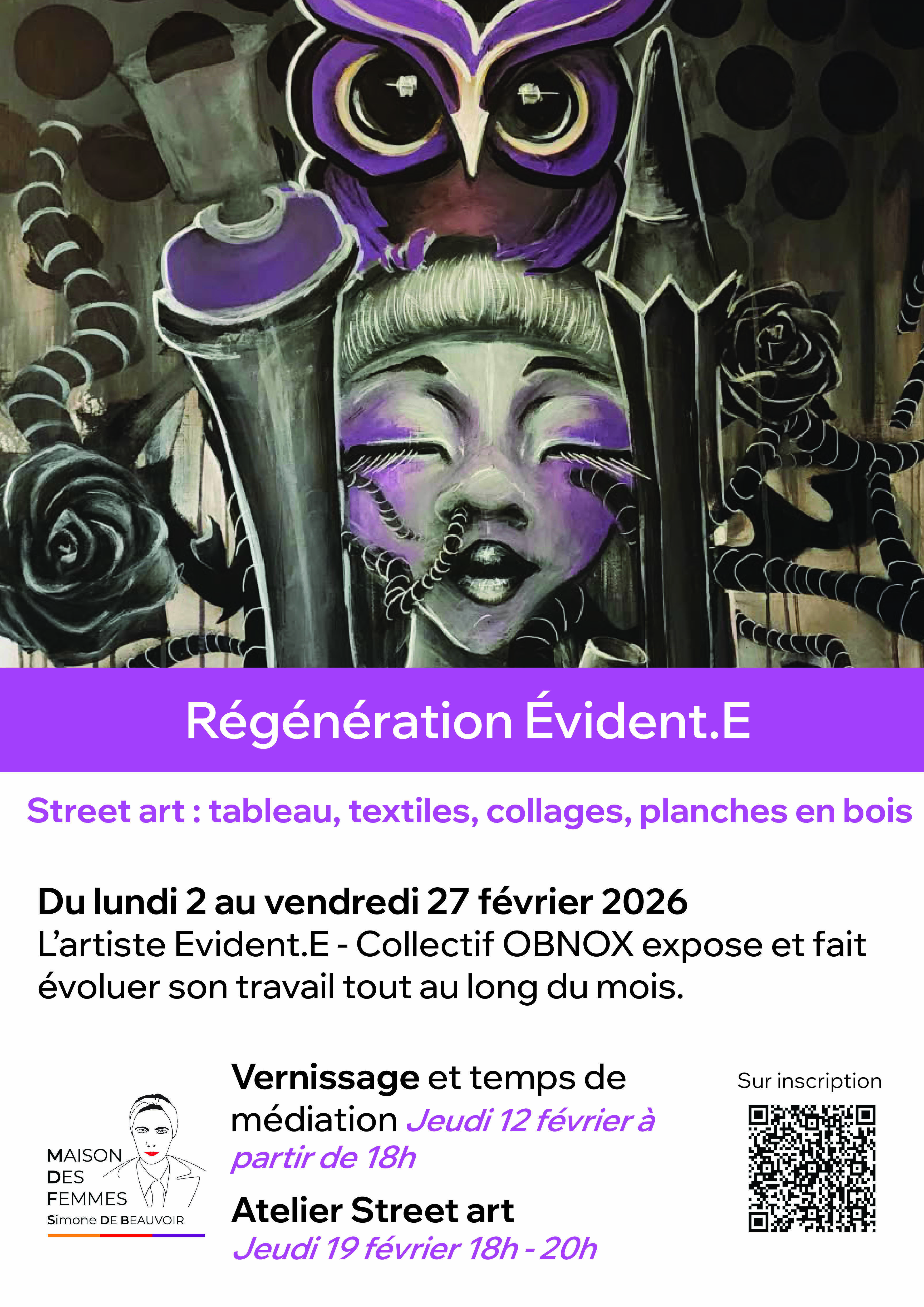 Jeudi 19 février de 18h00 à 20h00 sur inscription 🎨 Atelier Street art avec l'artiste du mois Evident.E