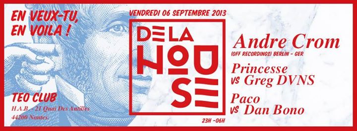 Et comme on en veut encore, après Claptone, Dj Le Roi, HNQO et 2000 And One, c'est au tour de André Crom le boss du Label Berlinois Housy de chez Housy ; "Off Recordings", (le 8ème Label le plus playlisté sur Resident Advisor en 2012), de venir faire groover les clubbers nantais avisés.
