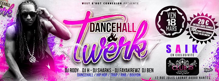 RENDEZ VOUS LE VENDREDI 18 MARS AU CLUB 25 POUR UNE AMBIANCE DANCEHALL RAGGA HIP HOP TWERK AVEC EN EXCLUSIVITÉ SAIK .