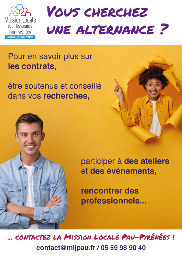 RDV à l'antenne de la Mission Locale pour les Jeunes Pau-Pyrénées à NAY pour exposer votre projet, être soutenu et conseillé dans vos recherches, en savoir plus sur les contrats, rencontrer des professionnels et des organismes de formation et participer à des ateliers, des événements et job-dating !