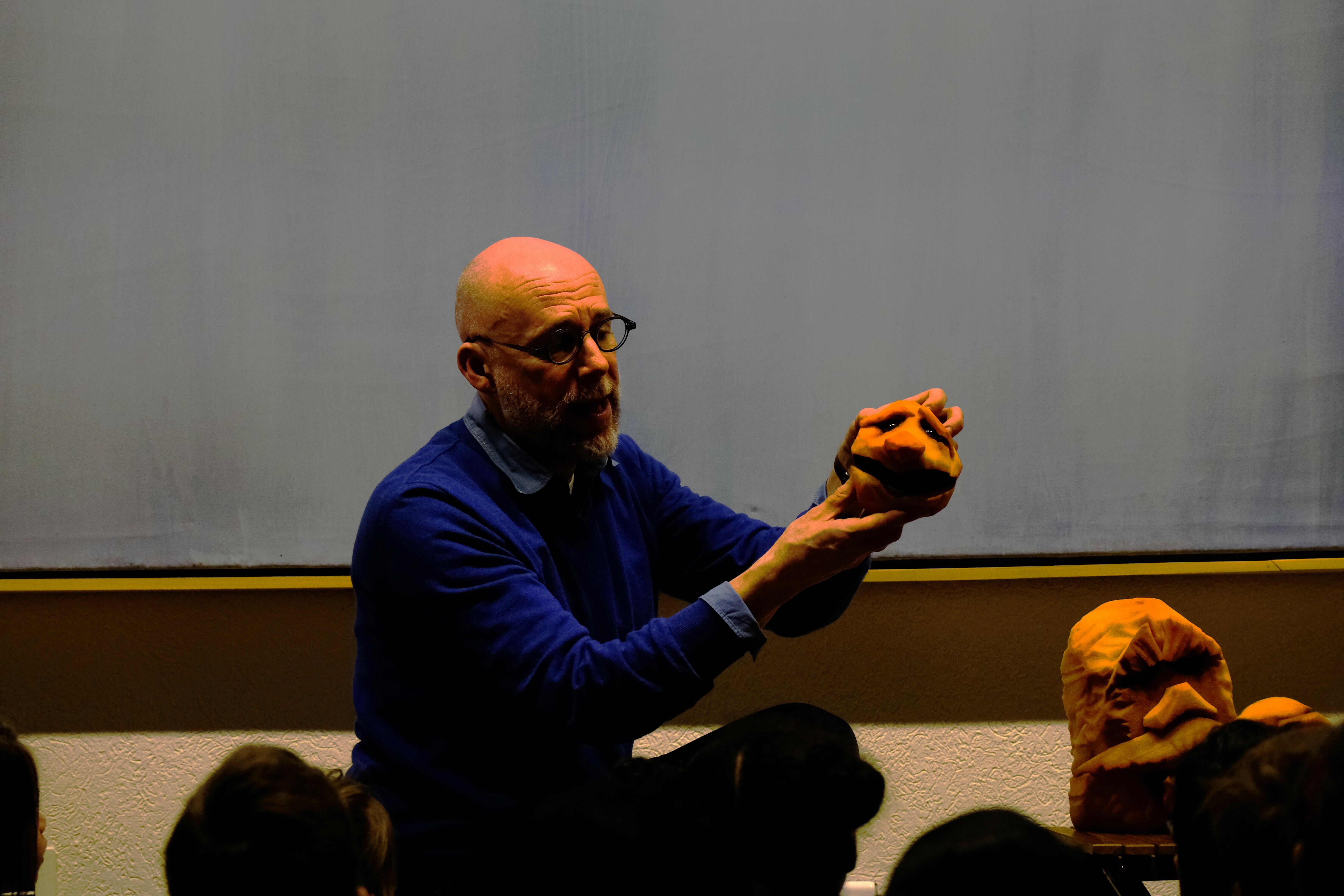 innocente (le public) avec la parole, des marionnettes et autres