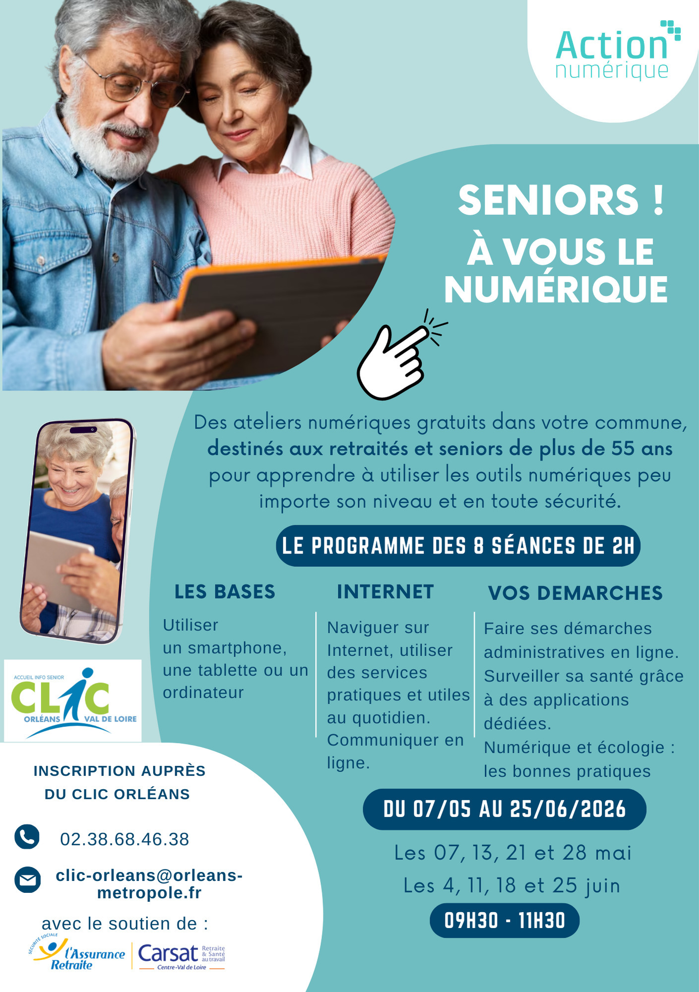 Gratuit sur inscription à partir du 5 janvier 2026, à partir de 55 ans (nombre de place limité aux habitants de la commune ou usagers de la structure). Voir conditions d'inscription auprès du partenaire.