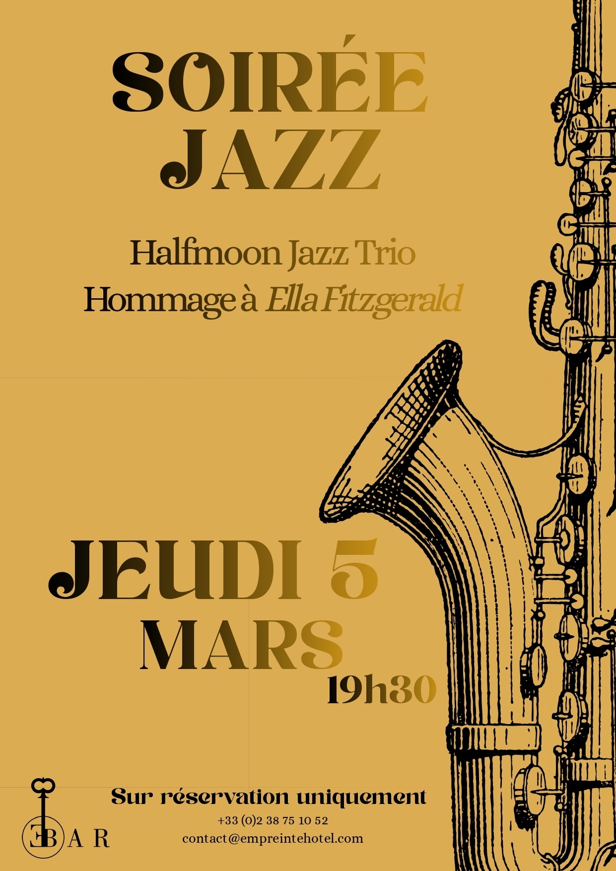 Résevation obligatoire : https://empreinte-hotel.experience-unique.com/soiree-jazz-empreinte-hotel