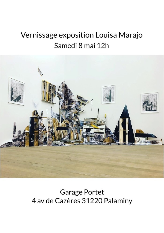 Louisa Marajo va utiliser son vocabulaire pictural et matériel habituel, le jaune, le noir, le blanc, le pot de peinture, le pinceau, le tréteau, la palette…, mais contextualisé ici avec des photographies du garage, intégrées dans son installation. Elle va ainsi incorporer, au sens propre, dans la matière même de son travail, le lieu dans lequel il est conçu. D’autres matières et matériaux vont peut-être aussi prendre place et augmenter son langage d’artiste.