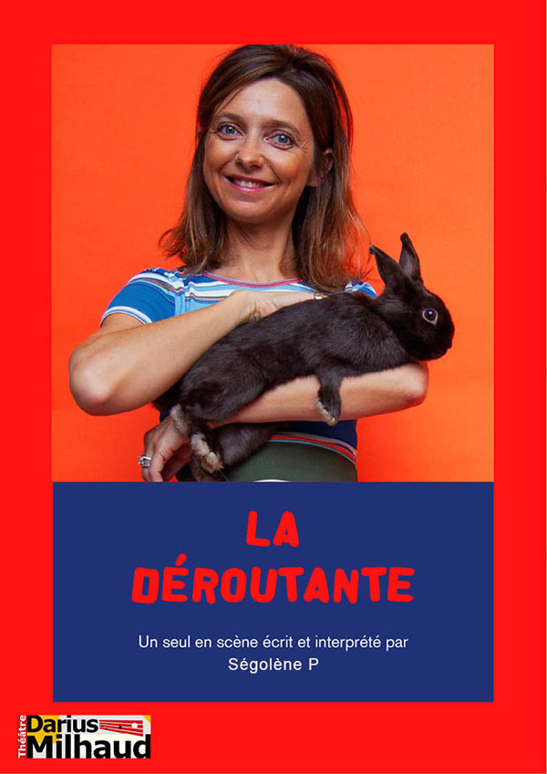 Seule sur scène avec deux lapins nains, la déroutante raconte sa vie et la société à la manière d'un stand up, entrecoupé de quelques sketches. Elle y évoque une enfance et une adolescence sordides et dresse le portrait au vitriol d'une « mère » privée de toute idée de maternité ; puis vient sa vie de famille : son mari, Choupette, contrôleur SNCF, sans arrêt parti et qui en dehors du travail vit à Clash of clan ; ses deux bêtes sauvages, enfin ses filles, qui n'ont hérité d'aucune de ses qualités…. Pourtant « La déroutante » pensait réellement qu'en se reproduisant, la transmission serait « automatique », mais apparemment rien ne s'était passé comme prévu ! Le tout dans un contexte familial somme toute confortable où l'on s'offre tout... grâce à un tas de crédits consos… que l'on rembourse… avec d'autres crédits consos…. Sur les conseils de « noreply », le conseiller préposé au crédit conso… Et puis il y a ses deux lapins qu'elle ne quitte jamais : Hubert et Chanel : parce qu'elle défend aussi la cause animale. Elle a sa propre association d'ailleurs. Un peu du style WWF. Sauf que ce n'est pas pour les pandas. Chanel, elle l'a appelée comme ça parce qu'elle a toujours rêvé d'avoir un objet de luxe. Hubert, parce qu'elle a toujours rêvé d'avoir un chauffeur privé. Elle adore Hubert. Surtout ce qu'elle adore, c'est l'Hubérisation de la société… l'Hubérisation de la société, ça l'a rendue complètement communiste… sans que personne ne s'en rende compte… l'air de rien… Et c'est en effet l'air de rien, avec un humour cynique et une liberté rafraîchissante, que la déroutante nous interpelle sur des sujets comme la déforestation, l'ubérisation, Apple, le crédit conso, l'intermittence, la maltraitance, le non remplacement d'un fonctionnaire sur deux... La déroutante, c'est un personnage stoïque, naïf, parfois trash et sarcastique qui s'étonne lui-même de ses propos et n'a pas conscience de leur impact. Touchante par sa naïveté, perturbante par son regard décalé, la déroutante éclaire et raconte avec délice notre société grâce à une plume bien taillée et un style décapant ! Autrice et interprète : Ségolène P Mise en scène : Julien Verplanken Lumière et scénographie : Julien Verplanken Genre : Stand up – One woman show Tout public (dès 16 ans) Durée du spectacle : 1h15