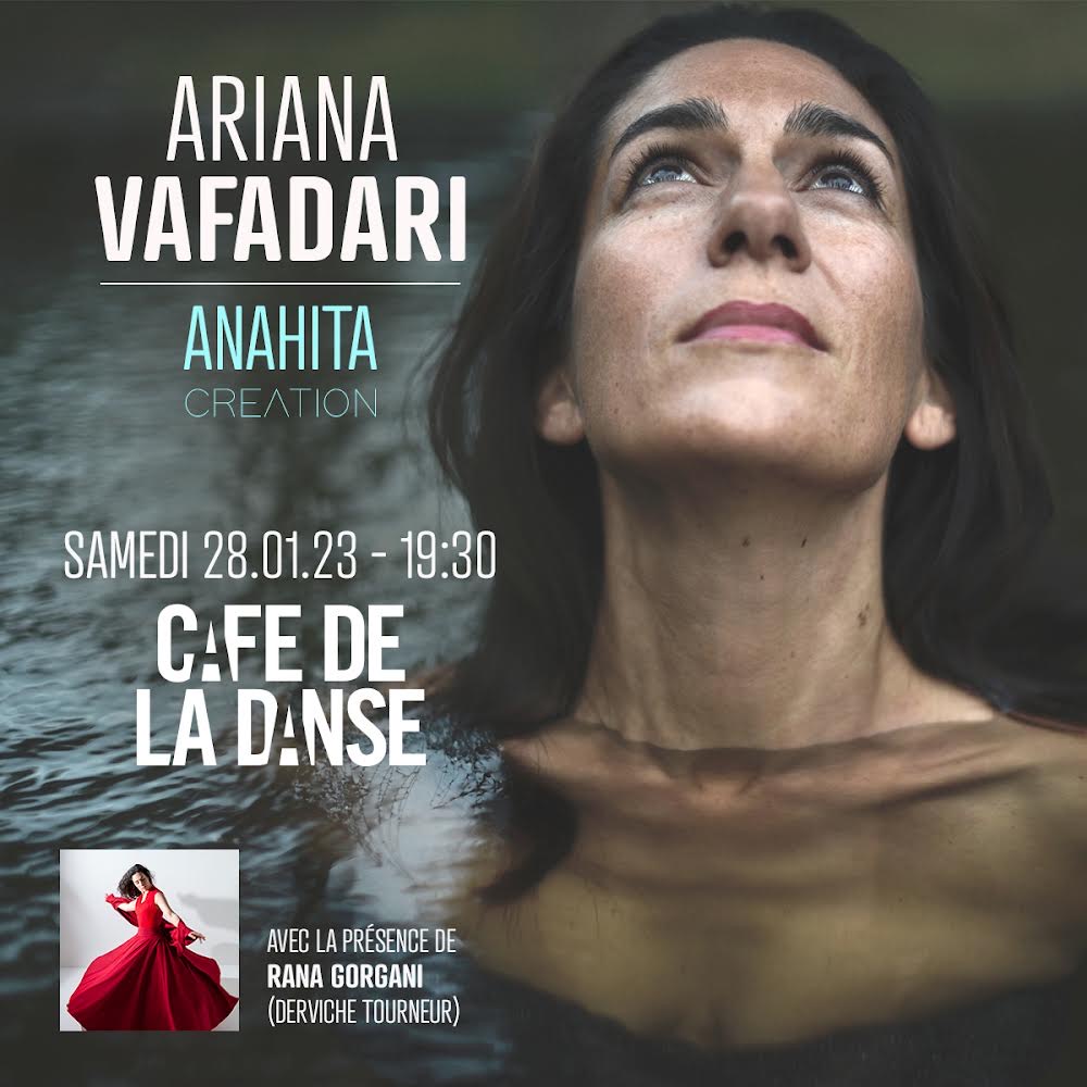 La chanteuse franco-iranienne Ariana Vafadari présentera "Anahita" son dernier album (sorti en mars 2020 chez Quart de Lune / UVM / Idol) le samedi 28 janvier 2022 à 20h00 (ouvertures des portes à 19h30) sur la scène du Café de la Danse, avec la participation exceptionnelle de Rana Gorgani (danse sacrée).