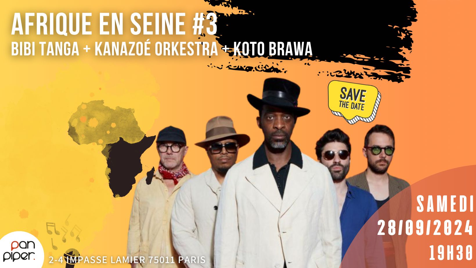 Alliant musiques traditionnelles aux sonorités plus modernes, la troisième édition de l’Afrique en Seine vous propose l’arbre magique du groove, Bibi Tanga & The Selenites, les maîtres du groove et du funk. Pour votre plus grand plaisir, ils seront accompagnés de Kanazoé Orkestra, une fusion virtuose et incroyablement dansante, et Koto Brawa, mêlant dans sa musique les rythmes traditionnels africains aux sonorités funk, blues, jazz ou même électro.