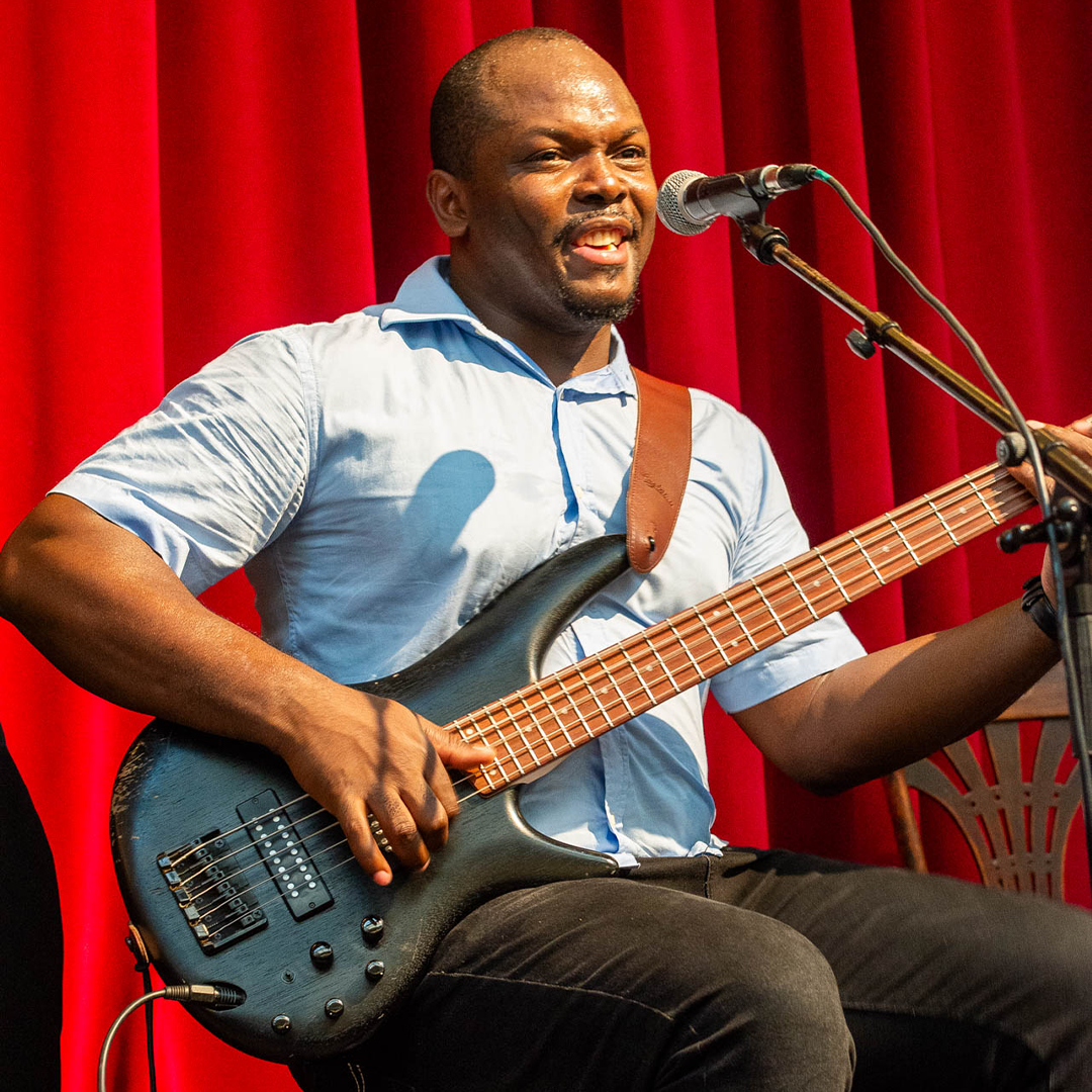 Après avoir fait ses armes auprès des plus grands noms de la musique en Afrique de l’Ouest, Achille Ouattara a développé un projet original croisant rythmes funk et traditionnels burkinabé avec un son que ne renierait pas son mentor Marcus Miller. Le talent protéiforme lui permet de délivrer un cocktail détonant qui a fait danser toute l’Afrique francophone pendant sa tournées des Instituts français de Dakar à Douala en passant par Bamako et Ndjamena. Son trio propulsé par Moise Ouattara aux percussions et Désiré Somé à la guitare passe en revue en les mêlant toutes les facettes de la musique contemporaine du jazz au rock.