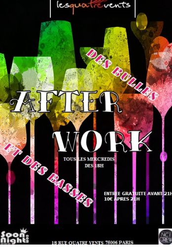 Le club des 'Quatre vents' qui vous accueille chaleureusement en plein cur de Paris à partir de 20h30 pour un AfterWork cosy et conviviale, qui vous mènera peut-être jusqu'à notre soirée à thème bulle cocktail qui commencera dès 23h