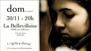 Après une formation classique en violoncelle, une tournée internationale avec Jane Birkin et multiples collaborations avec des artistes tels que Sophie Hunger ou Coming Soon, ou encore Etienne Daho c’est avec son projet solo que dom se présente aujourd’hui. Son premier album, « No meu pais » (sortie prévue 2012), est co-réalisé avec Piers Faccini, et compte avec les participations de la chanteuse Camille, et des brésiliens Kiko Dinucci et Thiago Pethit. Avec son violoncelle, sa pédale de boucles, son ukulele et son clavier, cette jeune musicienne brésilienne monte seule sur scène pour vous chanter ses chansons qui s’invente de la mpb à la folk, en passant par des petites sambas et des ballades oniriques, en portugais, en espagnol, en français ou en anglais. www.myspace.com/dominiquepinto www.facebook.com/pages/Dom/106756092719676 www.facebook.com/event.php?eid=166114650148167