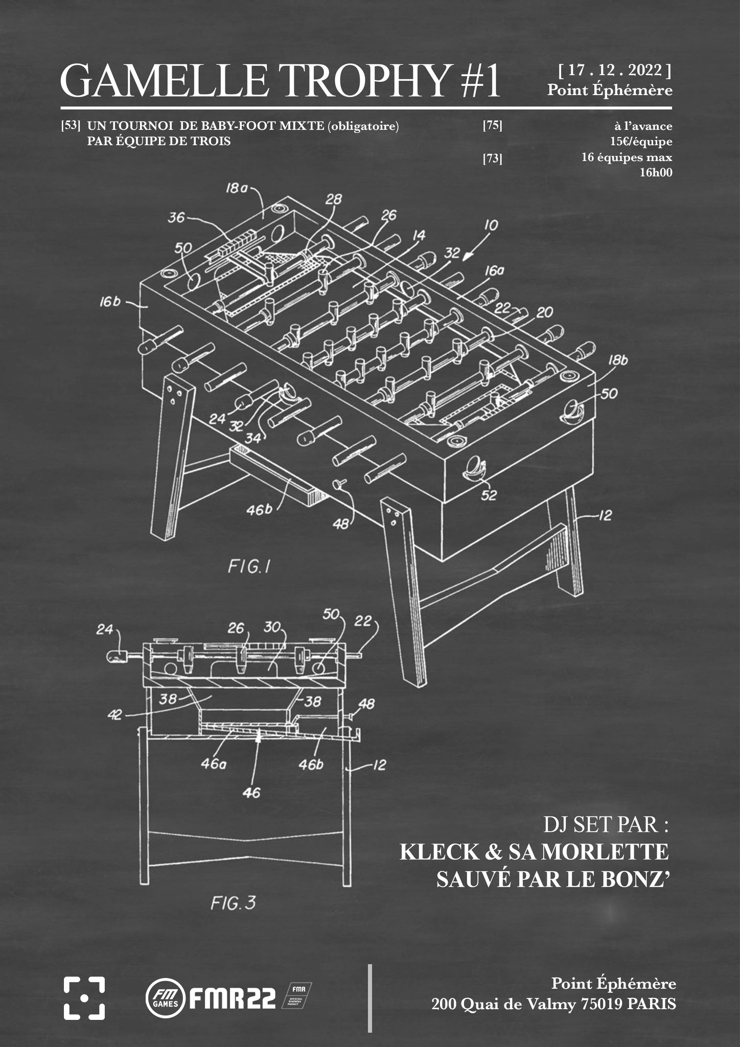 Un tournoi. 16 équipes de trois. Inscription à l’avance. 5€ par tête. Des lots. Des arbitres non-soudoyables. Une dose de fun tout à fait contre-indiquée par l’Union Française pour la Santé Bucco-Dentaire, et pour bercer vos oreilles, un DJ set aux petits oignons pas piqué des hannetons.