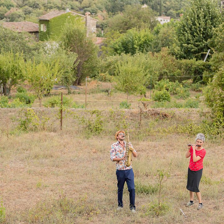 Se penchant dans leurs différents projets, tant sur les musiques actuelles que l’improvisation libre, l’écriture contemporaine ou les musiques populaires, Sylvaine Hélary et Robin Fincker cherchent dans leur rencontre à retracer, au fil de leurs compositions, le trajet de l’air produit par leurs instruments, pour y plonger l’auditeur. Du bruissement le plus ténu au souffle le plus plein, le duo résonne, glisse et devient trio, accompagnant ainsi la pièce, la voûte, le mur ou la clairière qui l’entoure.