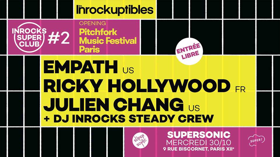 Les Inrockuptibles et Super continuent leurs explorations au Supersonic avec les Inrocks Super Club ! A l'occasion de cette deuxième édition, ils s'associent au Pitchfork Music Festival Paris 2019 pour leur soirée d'ouverture!