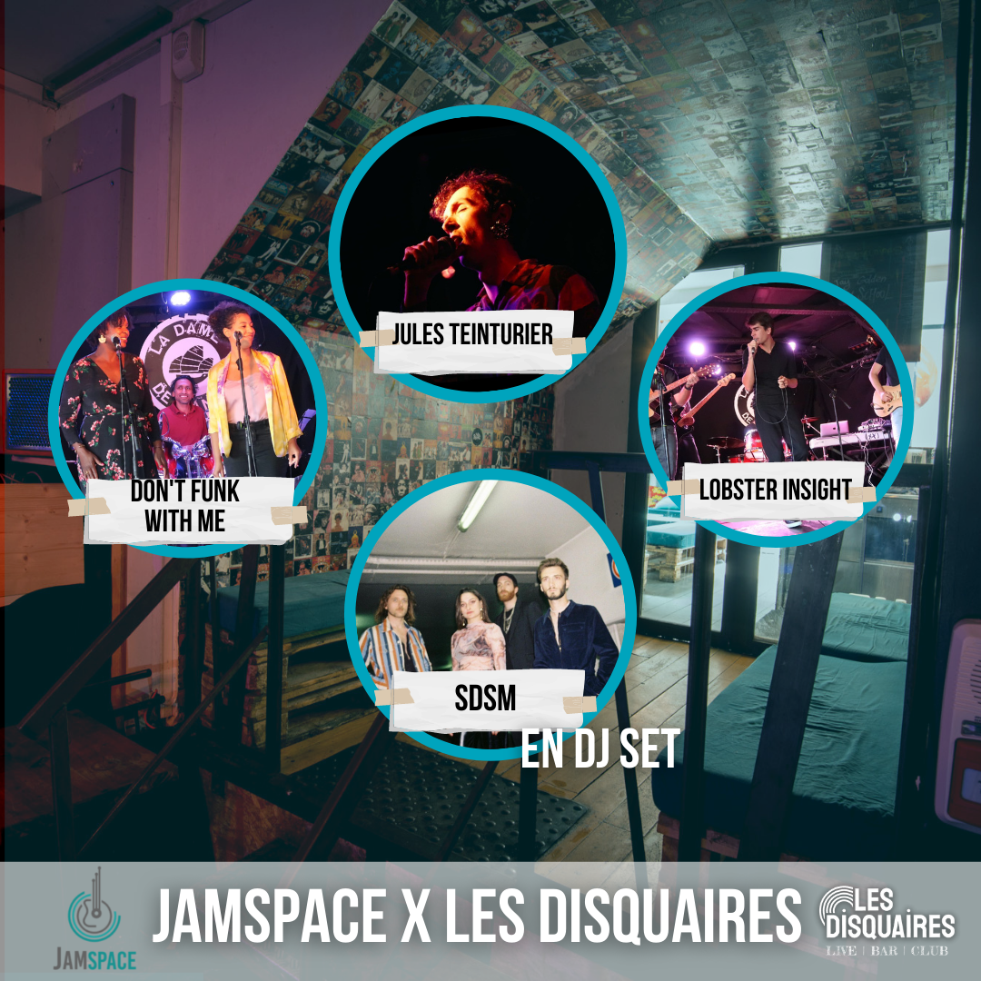 JamSpace, le réseau qui aide les musiciens à se rencontrer et développer leurs projets, vous invite à une soirée de concerts aux Disquaires. Vous y découvrirez plusieurs groupes formés ou accompagnés par notre structure, dans des styles variés allant du funk au rock, en passant par l’electro ou la chanson.