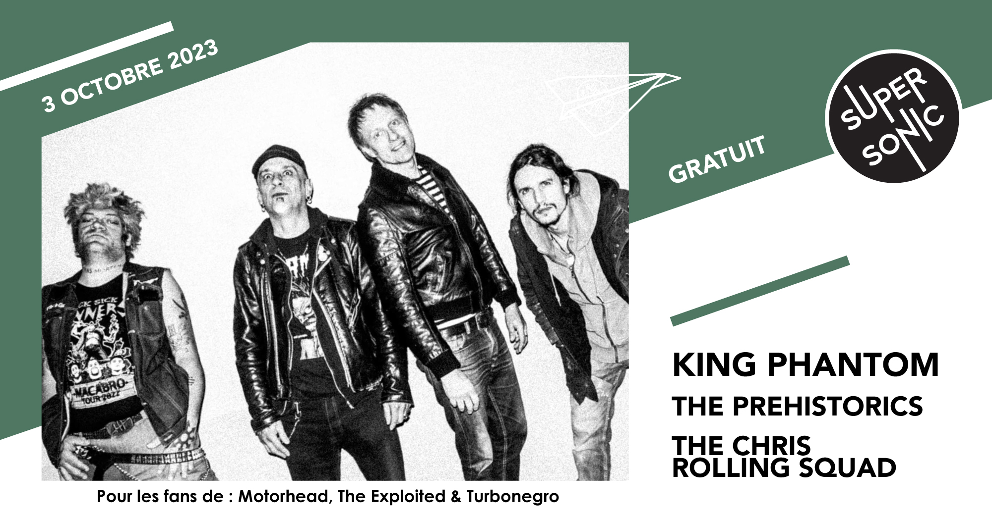 King Phantom est un groupe Heavy-Punk basé à Paris. Ces vétérans du gros son assurent une passerelle entre les amateurs de rock pur et dur et le public punk du circuit alternatif : la déferlante de riffs secs et rapides composant leur show rappelle le punk rock de la premier vague américaine, le psycho et revival garage, mais aussi les pionniers des 50’s.