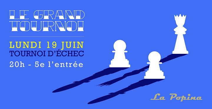Passionné(e)s de l'echiquier, exercez vos méninges et votre perspicacité, ce lundi 19 Juin aura lieu le tournoi d'echec Popina. Les conditions : 5e de participation, de la concentration, de la competition et un vainqueur. Nous espérons vous y voir nombreux.