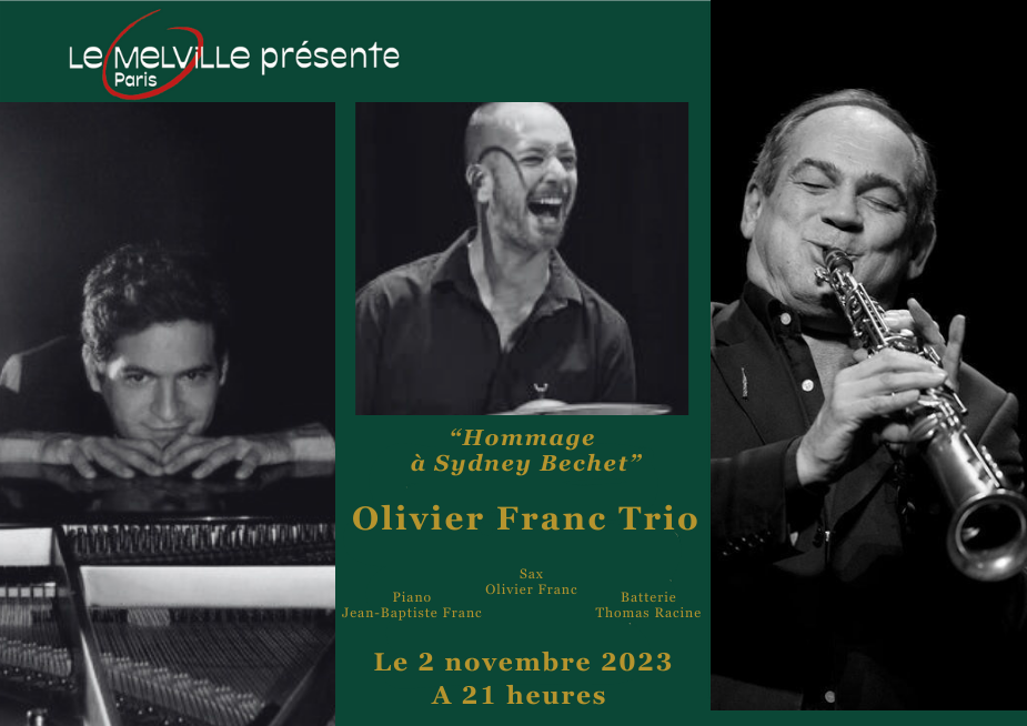 Olivier Franc: Saxophoniste Soprano, prix Sidney Bechet de l’académie du jazz, joue sur le saxophone personnel de Sidney Bechet. Olivier est le fils de René Franc, clarinettiste des orchestres de Pierre Braslavsky et d’André Réwéliotty qui accompagnèrent Sidney Bechet. Olivier débute sa carrière au début des années 1970 avant de fonder en 1976 sa propre formation. En 1979, il reçoit le Prix Sidney Bechet de l’Académie puis obtient le Prix Musiciens Français du Hot Club de France en 1997, pour son disque “Swing Folies” et en 2012, pour son disque “Ellington Mood”. Il est aujourd’hui reconnu dans le monde entier comme étant le meilleur disciple de Sidney Bechet, comme en témoigne son invitation par Wynton Marsalis sur la grande scène de Jazz in Marciac ou ses prestations à New York comme à la Nouvelle Orléans .