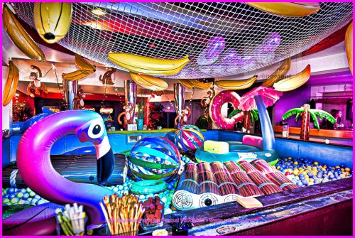 - La piscine du loft sera vidée puis remplie de balles en plastique, d'animaux et matelas gonflables