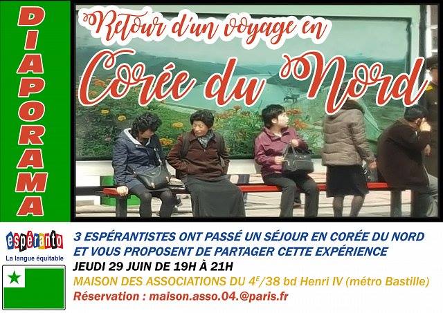 Dans le cadre du prochain congrès mondial d’espéranto à Séoul (Corée du Sud), trois membres de l’association Espéranto Paris Île-de-France ont visité la Corée du Nord du 4 au 12 avril 2017.