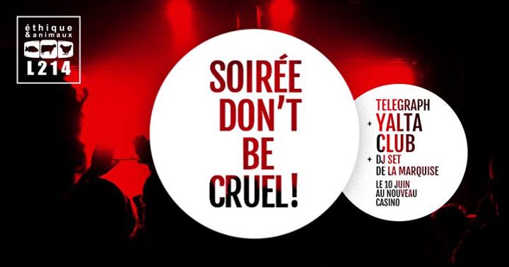 Le 10 juin, après la Marche pour la fermeture des abattoirs, retrouvons-nous au Nouveau Casino (11e arr.) pour une soirée-concert de folie! Au programme, le groupe Telegraph en 1ère partie, suivi d'un concert de Yalta Club et de 2h de DJ set de La Marquise!