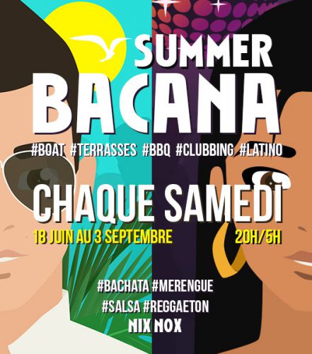 Et quoi de mieux qu?un bateau pour te faire voyager dans les Caraïbes ? Embarques avec nous pour des soirées endiablées, muy muy caliente et absolument différentes, loin du bling bling des soirées électro. Tu recherches une soirée dépaysante, décalée et différente, n?hésites plus la Summer Bacana est faite pour toi.
