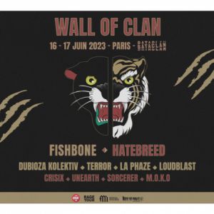 RAGE TOUR & LE BATACLAN PRÉSENTENT WALL OF CLAN Pour sa toute première édition, le festival Wall Of Clan, coproduction entre le Bataclan et Rage Tour, prend possession des lieux pour deux soirées énervées : le vendredi 16 juin, c'est dub et punk-rock, le samedi 17 juin, c'est hardcore et thrash metal. Vendredi 16 juin) FISHBONE DUBIOZA KOLEKTIV LA PHAZE M.O.K.O Samedi 17 juin HATEBREED TERROR LOUDBLAST CRISIX UNEARTH SORCERER