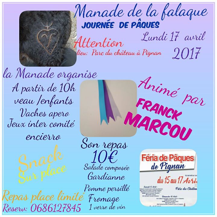 La Manade de la Falaque organise comme chaque année sa journée de pâques pour la féria de Pignan qui se déroule le week-end du 15/16 et 17 avril 2017