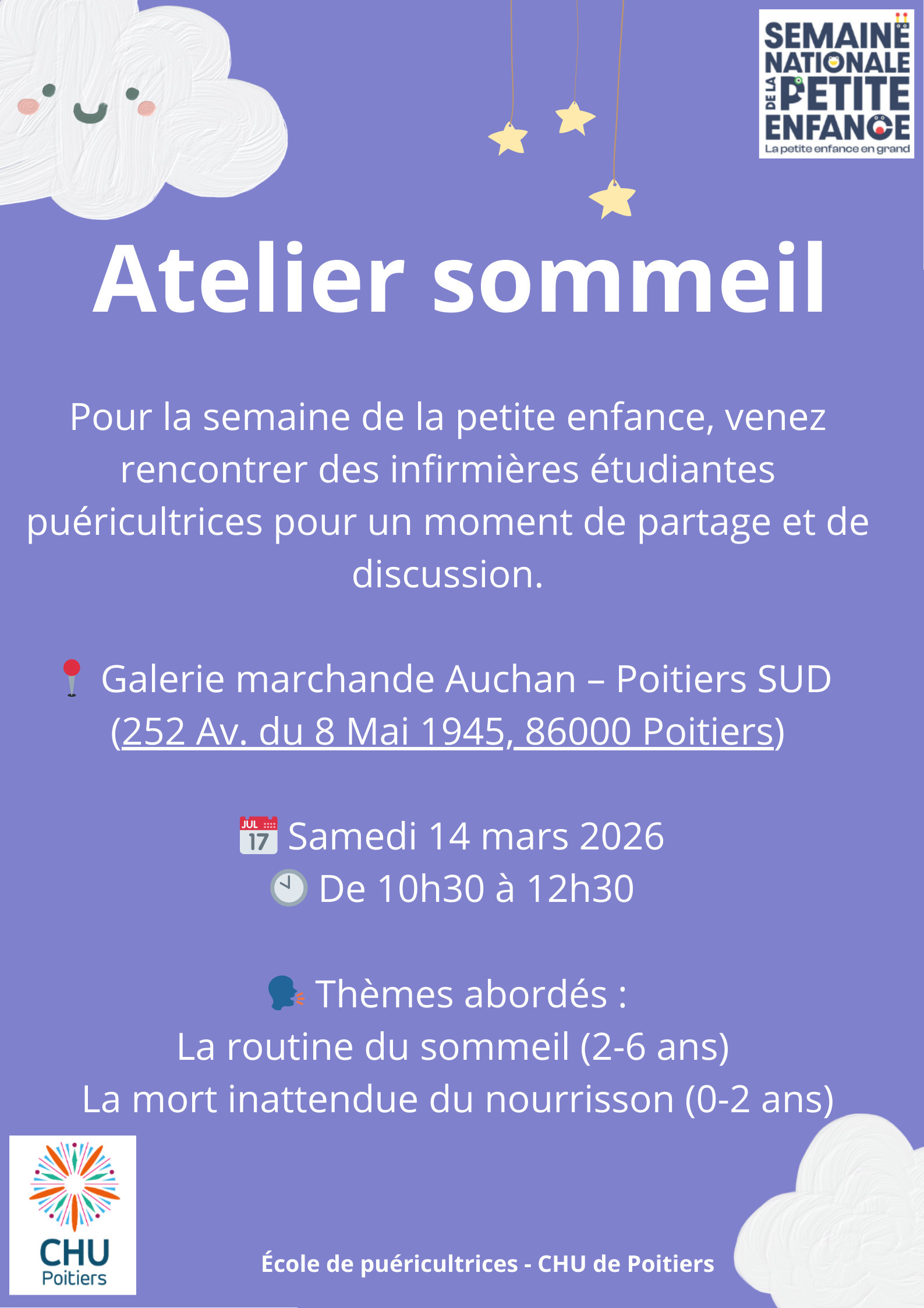 A la suite de notre formation, nous vous proposons de venir faire des jeux et des activités pour appprendre à nos cotés à propos du sommeil de votre enfant.
