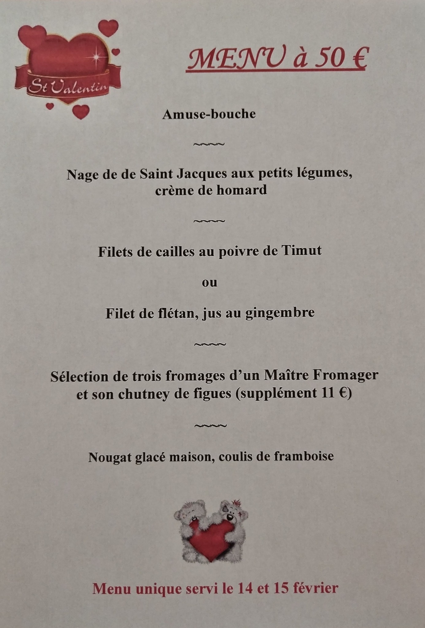 Votre menu de la Saint-Valentin à "La Bonne Source"
