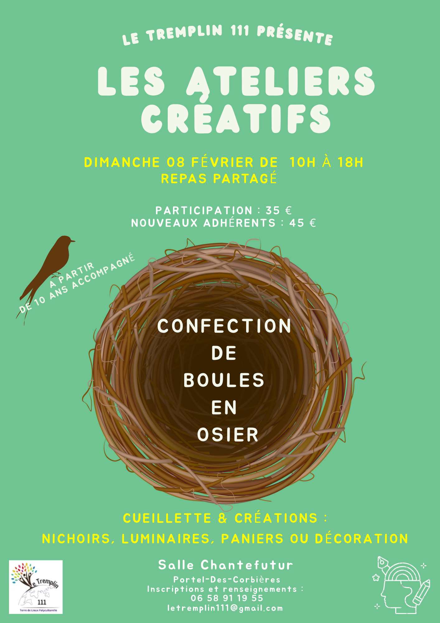 Tout au long de la jurnée, vous apprendrez à confectionner votre propore boule d'osier, ainsi qu'à récolter l'osier qui les compose. Repas partagé le midi. 35€ pour les adhértents.