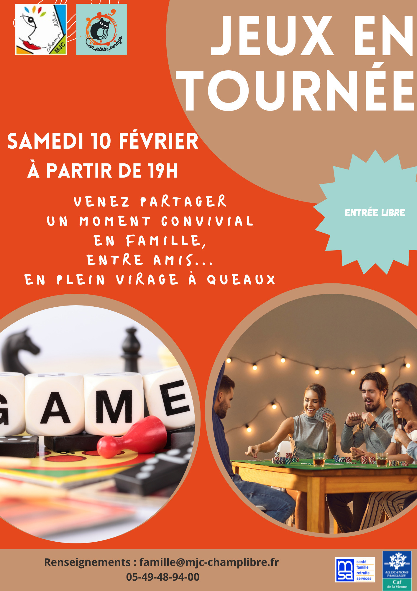 La MJC Champ Libre organise des soirées jeux de société dans les communes du territoire avec des partenariats locaux. L’occasion de jouer en famille ou entre amis, de découvrir de nouveaux jeux de société, comme des jeux collaboratifs où tout le monde