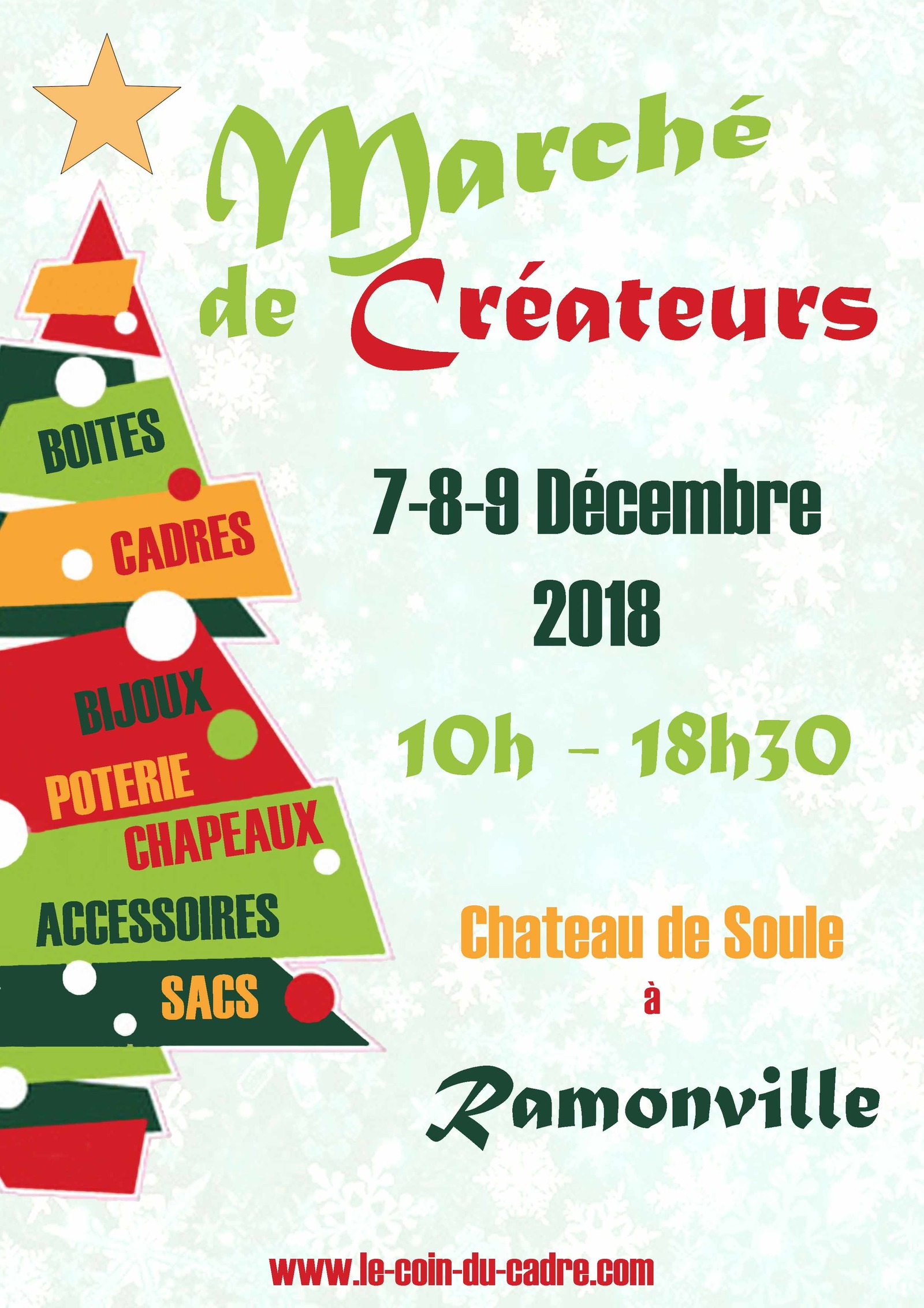 L’association Le Coin Du Cadre organise une exposition-vente au château de Soule à Ramonville de plusieurs artisans créateurs les vendredi 7, samedi 8 et dimanche 9 décembre 2018 de 10h à 18h30.