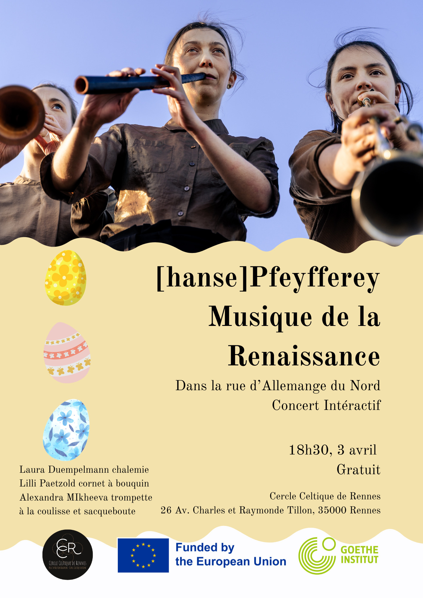 [hanse]Pfeyfferey est un ensemble bruyant jouant des instruments à vent de la Renaissance, spécialisé dans la musique improvisée et redécouverte de la période vers 1500. Lauréats du Cambridge Early Music Prize, elles ont bénéficié d’une subvention de l’Union européenne pour se produire dans différents lieux de la Métropole de Rennes.