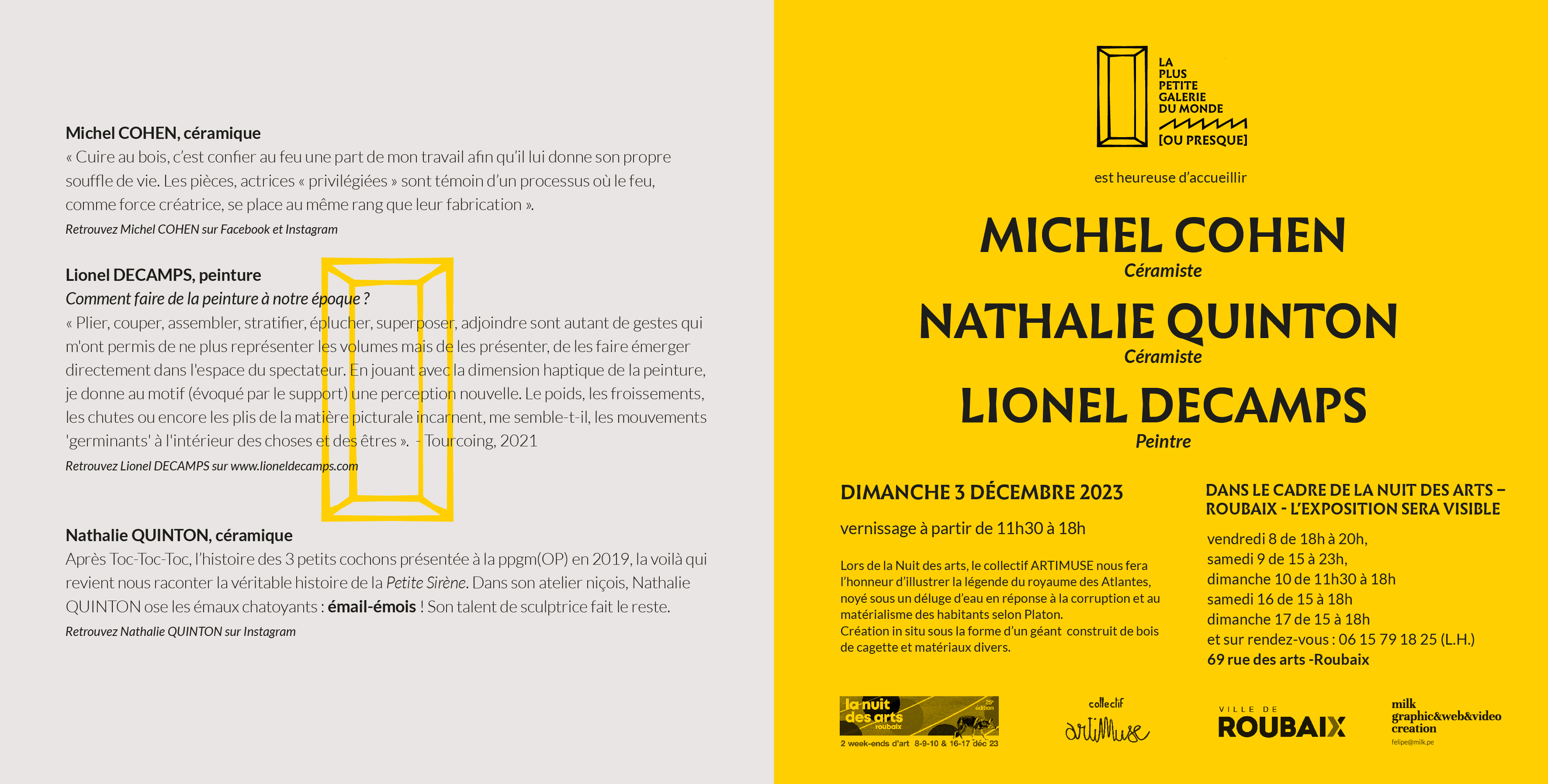 Trois artistes exposent en décembre 2023 à la PPGM(OP)