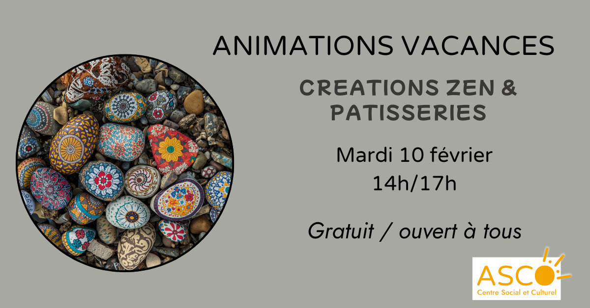 Venez solo ou en famille participer aux animations des vacances d'hiver ! Ce mardi, ce sera déco de galets et pâtisseries ! Gratuit et ouvert à toutes et tous (adhérents ou non). Infos : 05 56 95 99 16