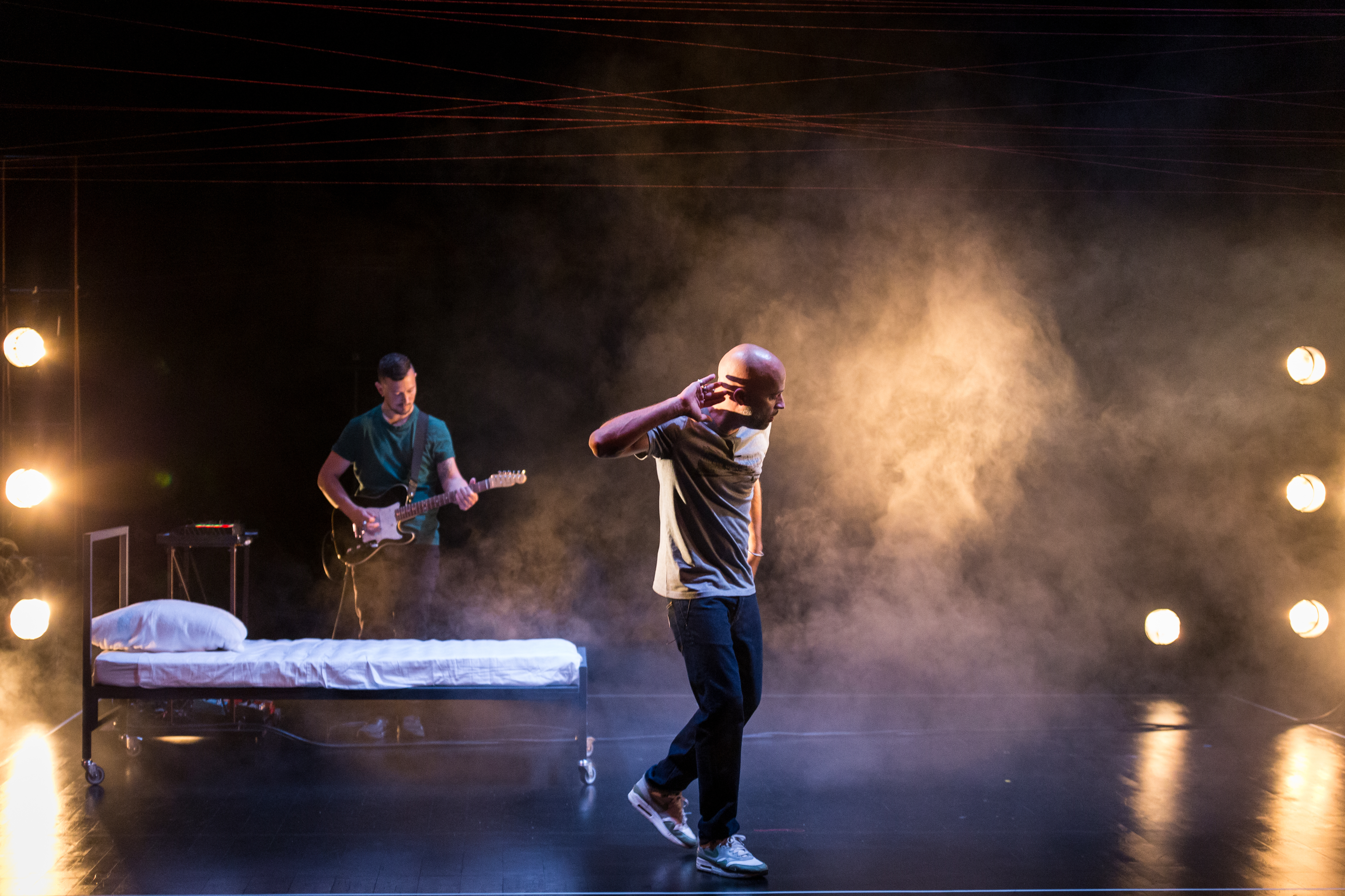 KADDISH, LA FEMME CHAUVE EN PEIGNOIR ROUGED’après l’Œuvre d’Imre KertészConception, adaptation et mise en scène : Margaux EskenaziAvec : Armelle Abibou, Michael Charny, Milena Csergo, Lucie Grunstein, Lazare Herson-Macarel, Raphael Naasz (jeu) et Malik Soarès (guitare et chant)Sorti des camps de concentration d’Auschwitz, de Zeitz et de Buchenwald, l’auteur hongrois Imre Kertész a dédié sa vie à décrire ce qui « dépouille l’homme de sa personnalité et de son destin ». Son œuvre, brillamment mise en scène par Margaux Eskenazi, explore cette quête. Depuis la création de son triptyque Écrire en pays dominé, elle s’attache à dessiner les récits multiples et complexes de notre société. En 2024, elle engage un dialogue avec Imre Kertész, prix Nobel, afin de porter au théâtre les mémoires et récits du judaïsme dans la France contemporaine. Margaux Eskenazi compose un texte de plateau sensible et musical, mêlant récits littéraires, témoignages intimes et questionnements politiques. Elle place au cœur de ce Kaddish, prière des défunts, la recherche littéraire de Kertész, sa vivacité politique, sa poésie et son humour. Son théâtre, engagé, « se décolonise » petit à petit, ouvre nos imaginaires en redistribuant les rôles, les registres et les genres. Dramaturgie : Guillaume Clayssen et Lazare Herson-MacarelConseiller historique : Nicolas MorzelleCollaboratrices à la mise en scène : Chloé Bonifay et Tiphaine Rabaud-FournierEspace et costumes : Sarah Barzic et Loïse BeauseigneurCréation lumière : Marine FloresCréation musicale : Antoine Prost et Malik SoaresCréation sonore : Antoine ProstDurée : 2h30Spectacle conseillé à partir de 15 ans [Au sujet de Kaddish, Mémoires – Volet 1] Avec ce nouveau spectacle remarquable, (…) Margaux Eskenazi parvient encore une fois à allier l’intime et le politique, la poésie et l’humour, les blessures du passé et la foi en l’avenir. Elle nous laisse dans l’attente du prochain opus de [ce] nouveau cycle sur l’identité et le judaïsme. Un Fauteuil pour l’orchestre