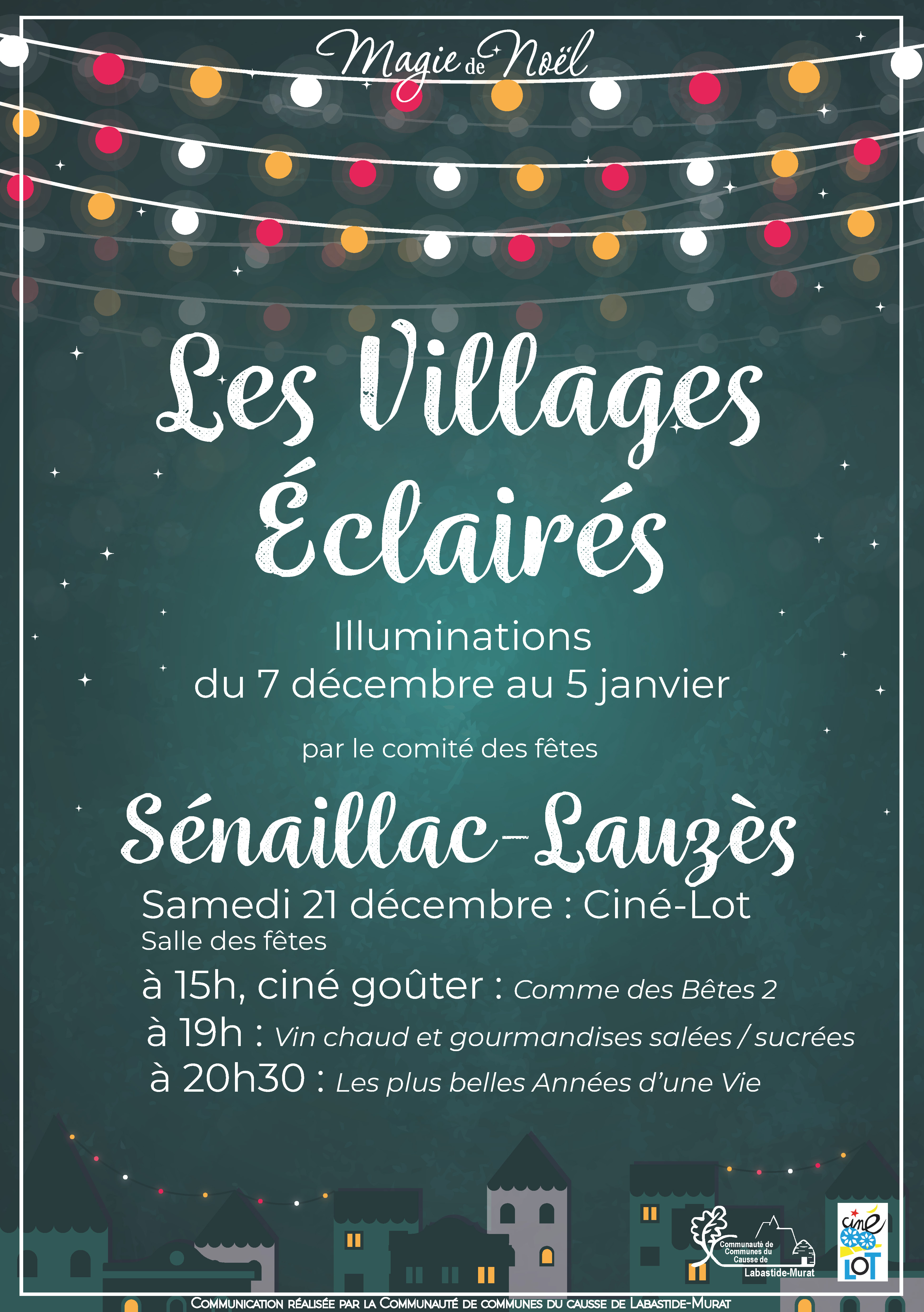 Les villages éclairés, c'est cinq communes du Causse de Labastide-Murat, qui font des leur village des lieux magiques pour les fêtes de fin d'année. Tout au long du mois de Décembre, chaque commune met les bouchées doubles pour faire briller les yeux des petits et grands, à travers de décorations toujours plus belles et illuminées.