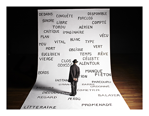 Espèces d’espaces de Georges Perec m’accompagne depuis de nombreuses années. L’espace est la question par laquelle j’aborde le théâtre. J’ai eu alors l’idée de prendre ce livre comme point de départ de ma prochaine création. Il ne s’agit pas d’une interprétation, ni même