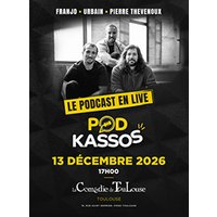 Podkassos c’est Franjo, Urbain, et Pierre Thevenoux, des humoristes qui se connaissent depuis quasi 10 ans et qui ont trouvé un prétexte pour traîner ensemble (enfin Franjo fait surtout ça pour l’arge Si tu es déjà un membre du pokassos gang tu sais très bien ce qui va se passer. En gros on va parler de sujets trop sérieux pour nous et donner des solutions pas ouf pour les gérer, parler mal de nos physiques respectifs, demander à Urbain de parler moins et à Franjo combien il gagne vraiment d’argent ? On change pas une formule qui gagne. On fera bien sur participer le public pour que vous trouviez des sujets pertinents et ce sera l’occase de vous croiser vous, nos auditeurs, pour la première fois. On a hâte ! Prends les billets ça va partir vite ! (ceci est une technique marketing)
