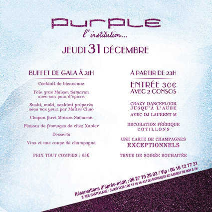 Événements en France Événements à Toulouse Événements à Purple Soirée clubbing à Toulouse Nouvel an Purple à Toulouse Musique à Toulouse Electro à Toulouse Styles varies à Toulouse