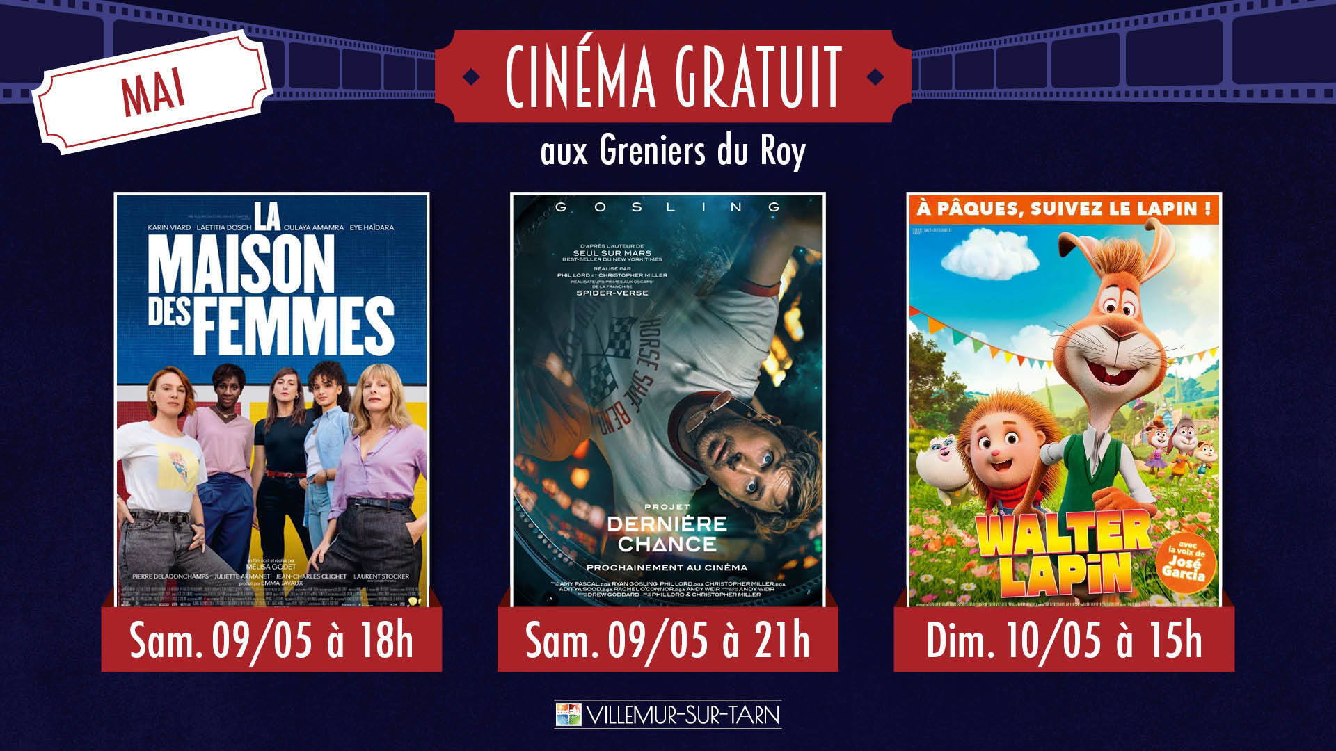 Cinéma Séances gratuites une fois par mois offertes par la Mairie.