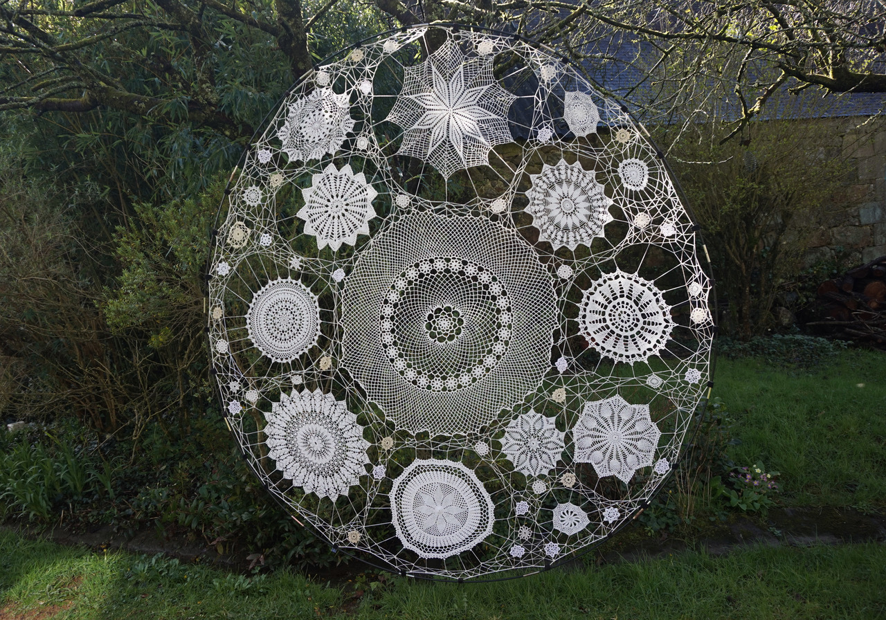 Installations dans les Jardins de Caroline Mc Avoy et Françoise de Vito, deux tisseuses de liens unies par le même désir de nouer des liens et de faire rêver, avec une passion particulière pour les dentelles. Fils et napperons tissés s'installent en légèreté dans un écrin de verdure ou s'associent à l'architecture, modifiant la perception des lieux.