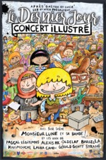 Les musiciens chanteurs prendront tour à tour le relais de la bande son en interprétant les différents personnages de l’histoire soutenus par l’animation des dessins. Un décor simple fait de boîtes lumineuses sur lesquelles sont inscrits les noms des personnages.