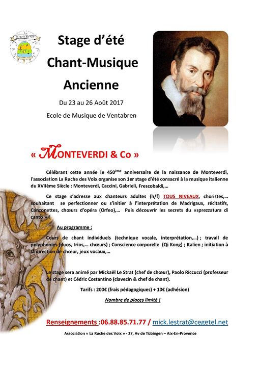 Stage de chant-Musique ancienne ouvert à tous : Débutants à Confirmés.