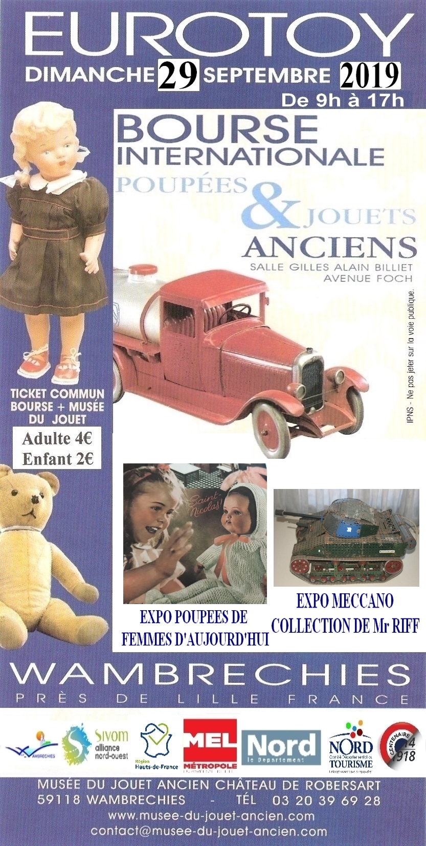 Entrée 2€/enfant de plus de 4 ans et 4€/adulte (salon Eurotoy et Musée)