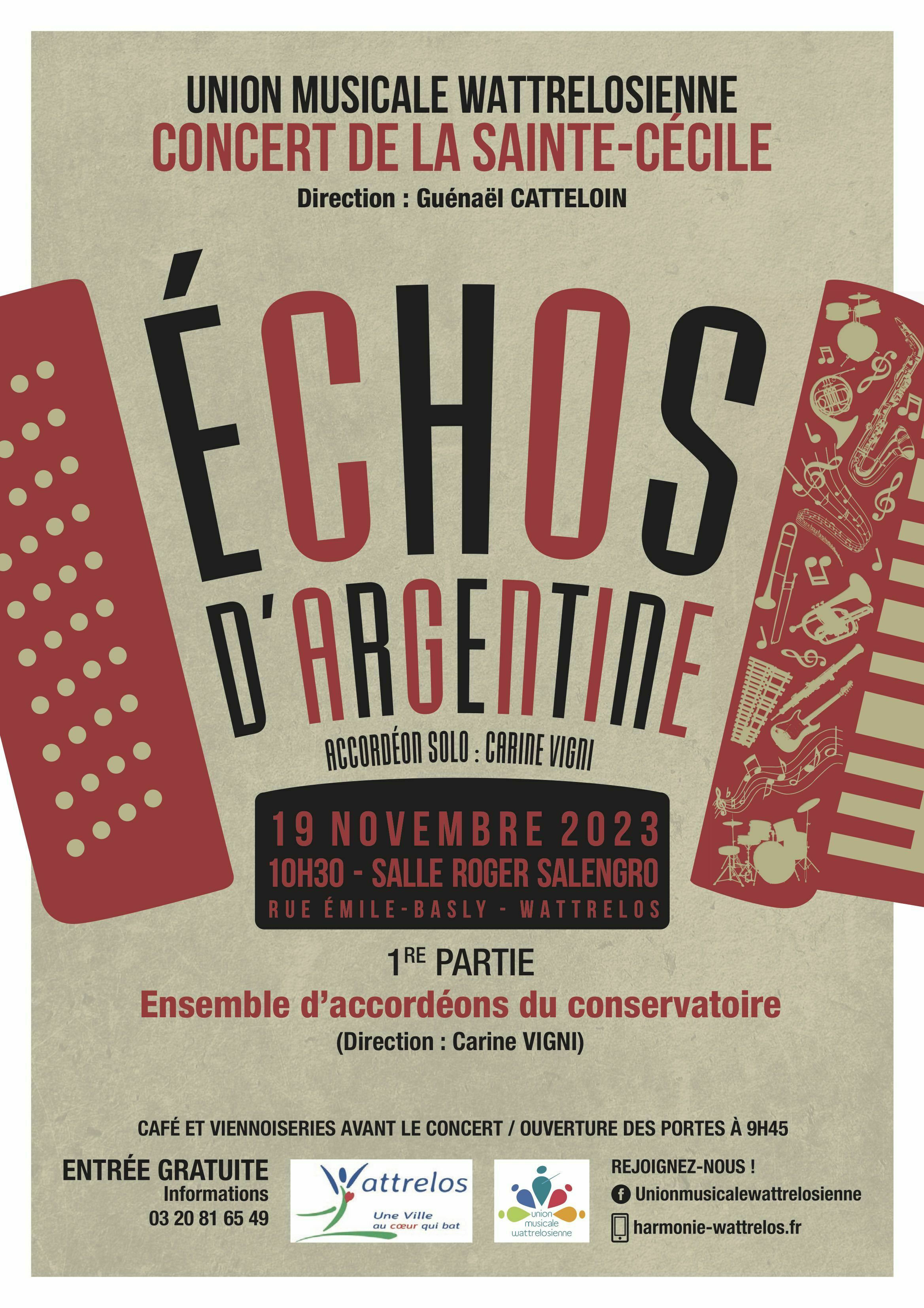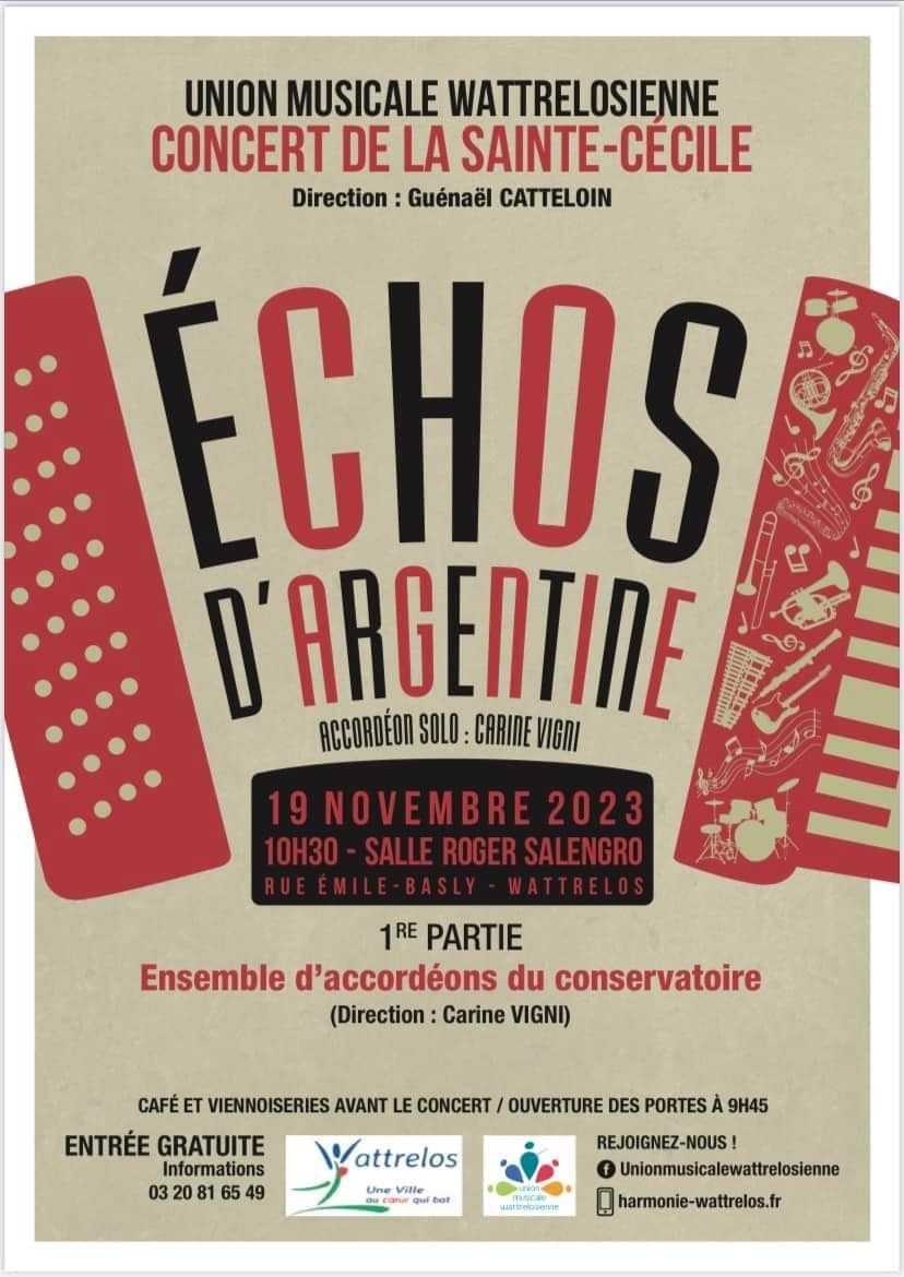 L'Argentine s'invite à Wattrelos ! Le 19 novembre, plongez au cœur des "Échos d'Argentine" lors du Concert de la Sainte-Cécile à la Salle Roger Salengro.